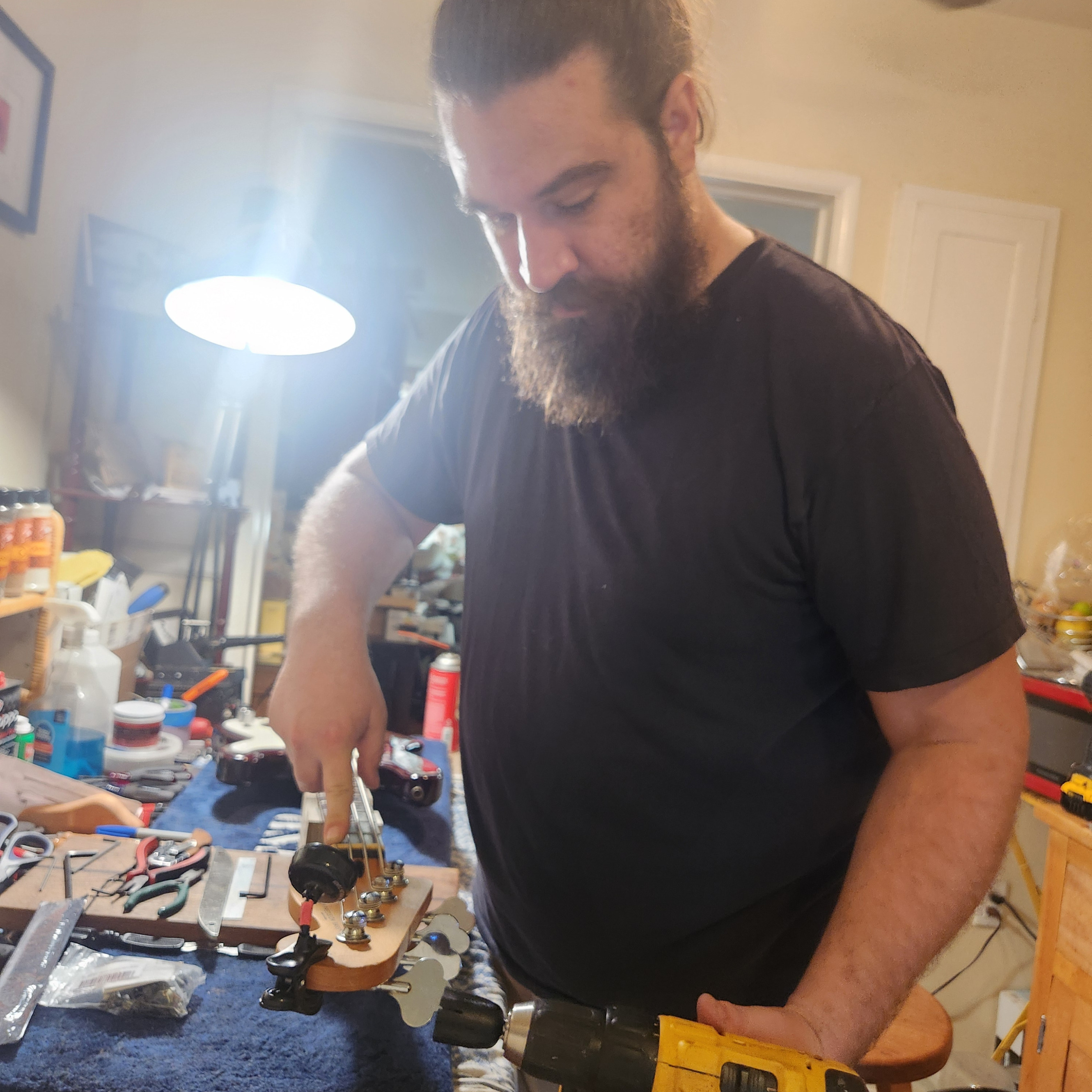 I built my first guitar when I was 12 years old - a hand carved copy of a Gibson Les Paul made out of scraps from my grandfather's cabinet company and my father's woodshop. I've been fixing, setting up, and modifying guitars for myself and my friends ever since. After moving from North Carolina to Los Angeles, I've worked for ESP Guitars and Shabat Guitars, learning from the best in the business. Now I'm offering professional quality guitar repair and maintainance services out of my kitchen here in West LA. All acoustic and electric guitars, basses, and mandolins are all welcome. If you have a strange or interesting instrument that isn't a guitar but needs work, please bring it by.
